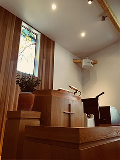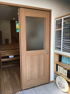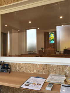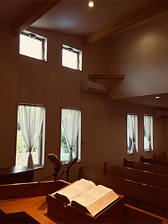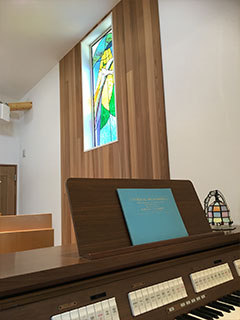 こちらの教会は県の道路拡張事業の為、同じ敷地内に建物を移動することになりました。 一時、曳家の計画もありましたが、新しく教会堂を建てる事となりました。 今まで無かった牧師館の機能も追加し、コンパクトながら機能性にあふれた 会堂が出来ました。 以前の教会堂で使用していたステンドグラスを移設し、 明るく華やかな印象の礼拝堂になり、教会員の皆様に喜んで頂けました。